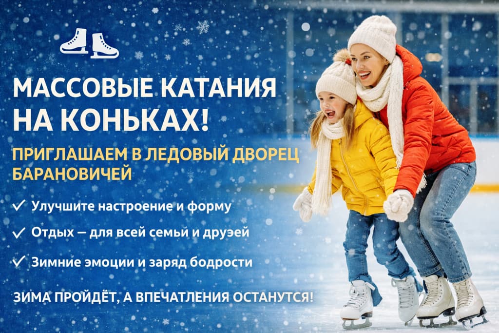 Абонемент на 12 посещений сеансов свободного катания для УЧАЩИХСЯ "Хоккейный клуб город Барановичи" без проката коньков
